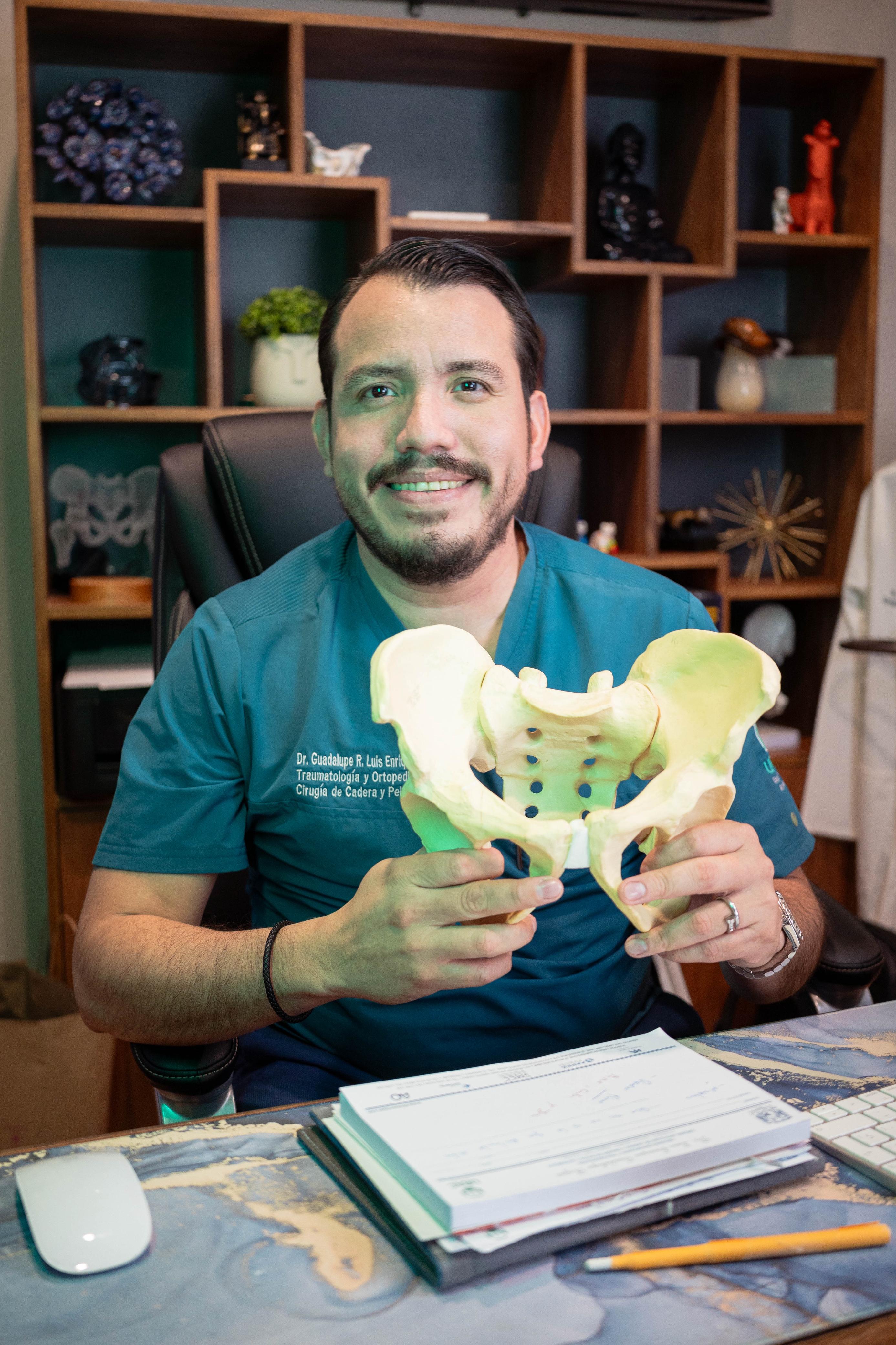 El Dr. Luis Enrique Guadalupe Rojas es un médico cirujano especialista en Ortopedia y Traumatología egresado de la UNAM, con formación en el Hospital General de Xoco donde realizó una Alta Especialidad en Cirugía de Cadera, Pelvis y Acetábulo, además de una rotación de adiestramiento en Cirugía Articular de Cadera y Rodilla en Colombia bajo la supervisión del Dr. Nicolas Restrepo.